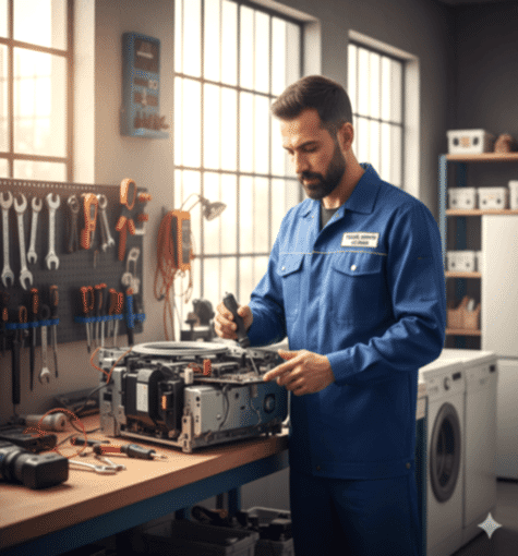 - Kondenser temizliği, ısıtma sistemi ve tambur arızası gibi parçalar yerinde kontrol edilip değiştirilir.
